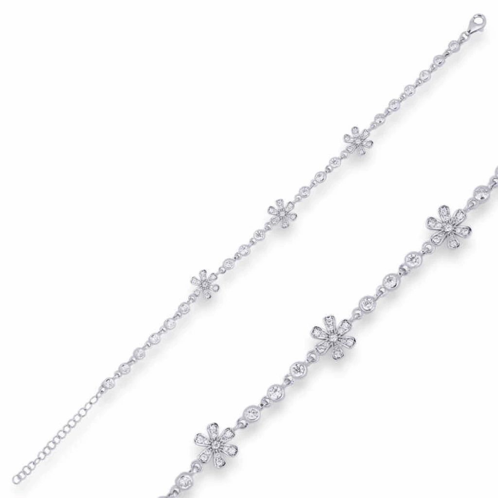 Sevdiklerinize duygularınızı ifade etmenin en özel ve zarif yolu O’na gönderebileceğiniz şık, rengarenk ve mis kokulu çiçeklerdir. Özel günlerde verilecek hediyeler arasında olan çiçek, bu kez gümüş bileklik olarak tasarlandı... En kaliteli, en parlak, en ışıltılı taşlarla hazırlanmış gümüş çiçek bayan bileklik sevgisini bir kez daha anlatmak isteyenleri, sen bir çiçeksin demek isteyenleri bekliyor. Bu özel tasarım çiçek bayan bileklik 925 ayar gümüşten imal edilmiştir. Gümüş üzerine rodyum kaplama yapılmıştır. Rodyum kaplama yapılan gümüş bayan bileklik modelleri parlaklığını uzun süre muhafaza eder ve oksitlenmesi gecikir. Bileklik üzerinde bulunan beyaz taşlar zirkondur. Tüm bayan gümüş bileklik modellerinde olduğu gibi gümüş çiçek bayan bileklik de el emeği ile üretilmiştir. Gümüş ve değerli taşlar nedeniyle belirtilen ürün ağırlığında ± %10 sapma olabilmektedir.