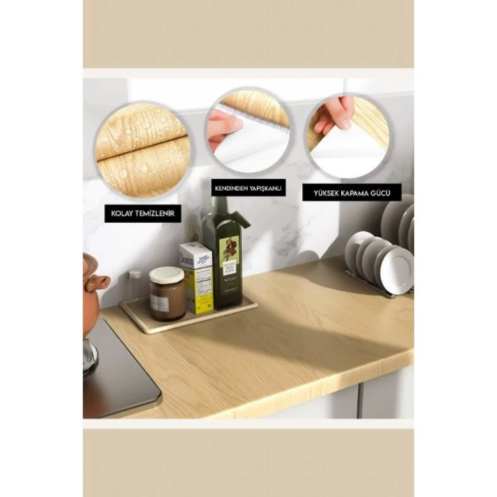 AHŞAP GÖRÜNÜMLÜ KENDİNDEN YAPIŞKANLI KAPLAMA FOLYOSU 5 METRE Ürün Özellikleri Mutfak,banyo dolapları, tezgah, mobilya gibi alanlarda kaplama yapılabilir.Tezgahkullanımında birebir ateşten korunmalı, üzerine sıcak tencere, çaydanlıkvs. koymaktan imtina edilmelidir.Üzerindebıçak ve kesici bir aletler ile kesim yapılmamalıdır, kesim tahtasıkullanmanızı öneririz.Kendindenyapışkanlı, silinebilir kaplama folyosu.Üzerindekesim yapılmamalıdır. Kesim yaparken kesim tahtası kullanılmalıdır.Ateşten korunmalı, üzerine sıcak tencere, çaydanlık vs. koymaktanimtina edilmelidir.Dikkatlikullanım gerektirir.Su, nem vebuhardan etkilenmez.Silinebilir,deterjana karşı dayanıklıdır.UygulamaYapmaya Başlamadan önce mutlaka uygulama videolarımızıizleyiniz ve dinleyiniz.Kendindenyapışkanlı kaplama folyoları KAĞIT değildir. Sudan etkilenmez.Ürünleruygulandığı koyu zeminin rengini belli etmez,kapatıcı özelliği vardır.Sökmek istediğinizdeproblem olmaz sökebilirsiniz. Paket İçeriği 1 adet ahşap görünümlü kaplama kağıdıUzunluk: 5 m Genişlik: 60 cm