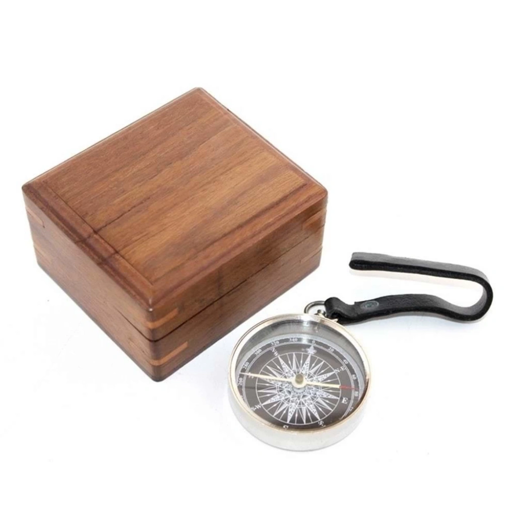 Ahşap Kutulu Krom Pusula