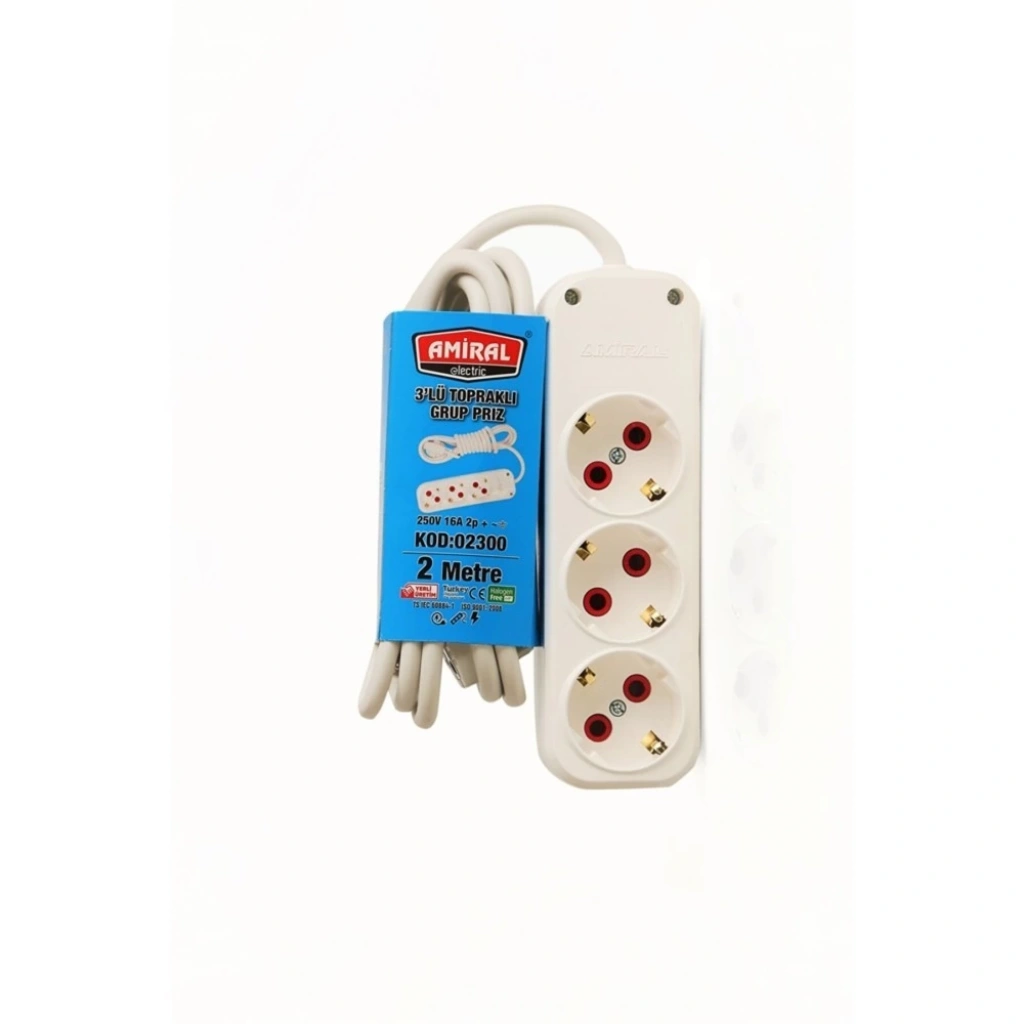 Amiral 3' lü Topraklı 2 Metre Kablolu Grup Priz