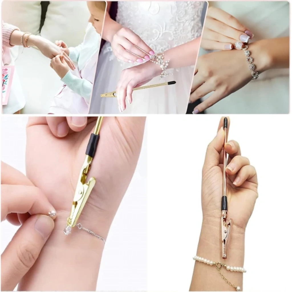 BİLEKLİK TAKMA YARDIMCI APARATIÜrün ÖzellikleriBileklik Takma Yardımcı Aparatı, bilekliğin ucunu aparatın ucundaki klipse sıkıştırarak, tek elle kolayca bileklik takma imkanı sunar. Özellikle toka kapama zorluğu yaşayan kullanıcılar için idealdir. Kompakt boyutları sayesinde çantada veya takı kutusunda rahatlıkla taşınabilir. Zincirli, klipsli ya da kancalı bileklik çeşitleriyle kullanılabilir. Metal tutucu uç ve ergonomik sap yapısı sayesinde uzun ömürlü kullanım sağlar. Bu pratik aksesuar, kullanıcıların bilekliklerini tek başlarına kolayca takabilmelerini sağlar. Bileklik ucunu klipse takın ve sıkıştırın. Aleti bilekliğin takılı olduğu kolunuzda tutun. Serbest elinizle toka kilidini bağlayın. Klipsi bırakın ve bilekliğiniz hazır!Paket İçeriği1 Adet Bileklik Takma Yardımcı Aparatı