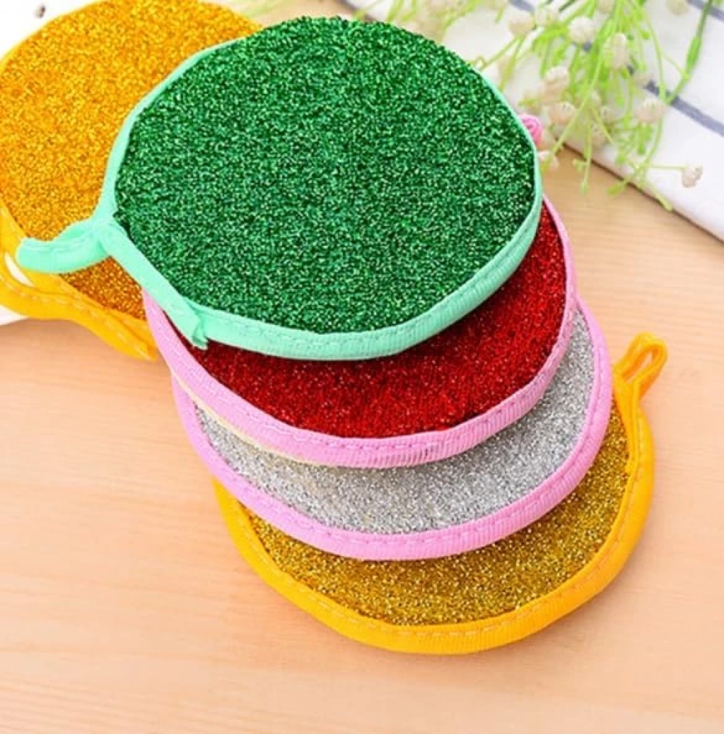 ÇİFT TARAFLI BULAŞIK SÜNGERİÇift taraflı bulaşık süngeri, mutfak temizliğini daha etkili ve pratik hale getiren bir üründür. Yuvarlak şekli sayesinde farklı yüzeylere kolayca uyar ve çeşitli temizlik ihtiyaçlarını karşılar. Hem yumuşak hem de dayanıklı malzemeler kullanılarak tasarlanmıştır.Her iki tarafı da farklı temizlik görevleri için uygundur; bir tarafı lekeleri çıkarmak ve yüzeyleri parlak hale getirmek için, diğer tarafı ise inatçı kirleri temizlemek için idealdir. Duvara asılabilen tasarımı, mutfak düzeninizi sağlamak ve süngerin kolay erişilebilir olmasını sağlamak için kullanışlıdır.Bu çift taraflı bulaşık süngeri, uzun ömürlü kullanım ve etkili temizlik performansı sunarak mutfak işlerinizi daha keyifli hale getirir.Paket İçeriği1 adet çift taraflı bulaşık süngeri