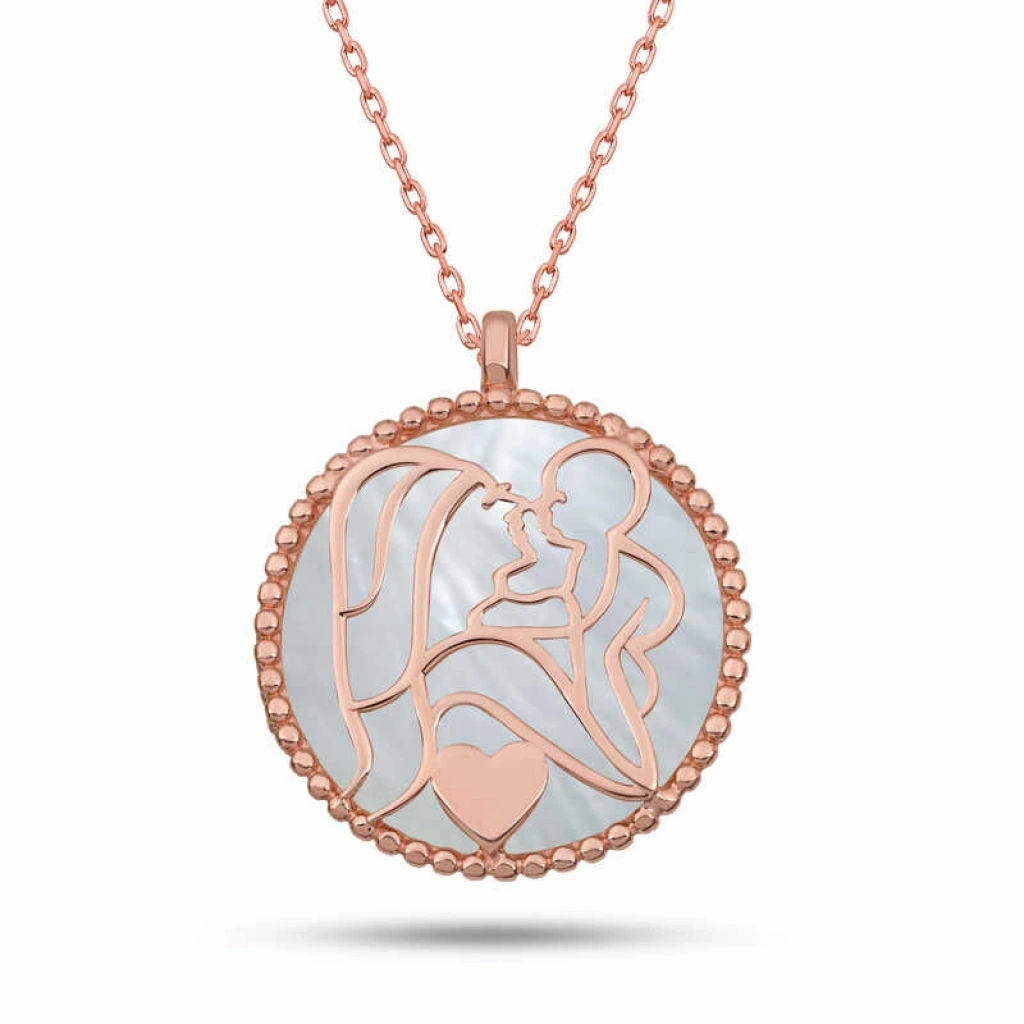 Gümüş Fosforlu Rose Anne Çocuk Sevgisi Kadın Kolye