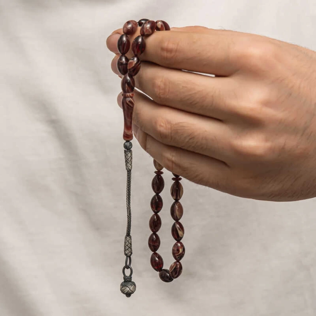 Gümüş Kazaz Püsküllü Sıkma Kehribar Tesbih