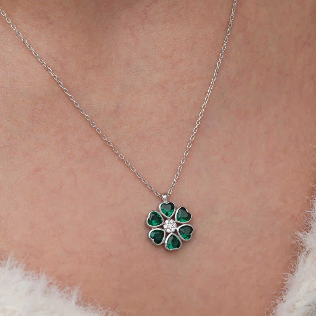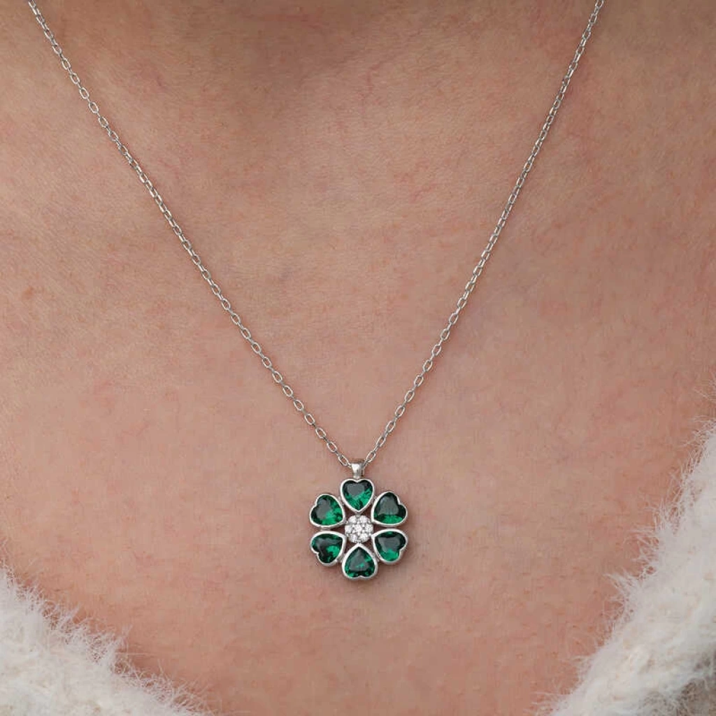 Yeşil renk genellikle doğayı, yaşamı, büyümeyi, uyumu, tazeliği, umudu ve bazen de kıskançlığı temsil eder. Kalp sembolü ise aşkı, sevgiyi, şefkati, tutkuyu ve duygusallığı ifade eder. Yeşil bir kalp, bu olumlu anlamları bir araya getirebilir. Örneğin, doğaya olan sevgiyi, sağlıklı bir aşkı veya büyüyen bir ilişkiyi temsil edebilir. Bu şık kolye; doğum günü hediyesi, sevgililer günü veya özel günlerde tercih edilebilecek mükemmel bir seçenektir.Kolye; 925 ayar gümüşten imal edilmiştir. Gümüş üzerine rodyum kaplama yapılmıştır. Gümüş ve değerli taşlar nedeniyle belirtilen ortalama ürün ağırlığında ± %10 sapma olabilmektedir.
