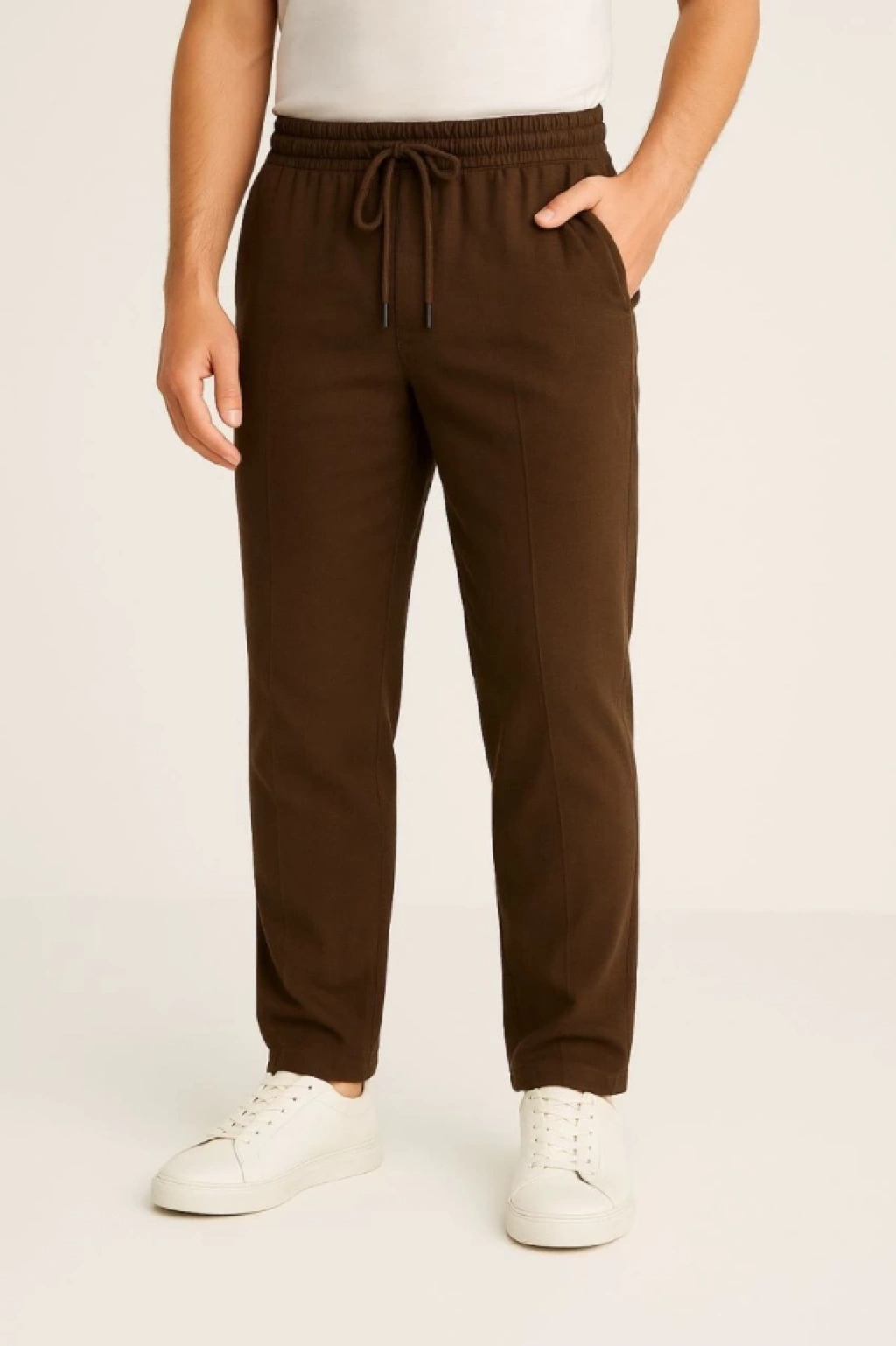 Erkek Keten Pantolon – Cepli, Beli Lastikli Ve Bağcıklı, Nefes Alan Rahat Kalıp, Yazlık Ve Baharlık Günlük Giyim, Şık - Konforlu Boru Paça Model - Kahverengi