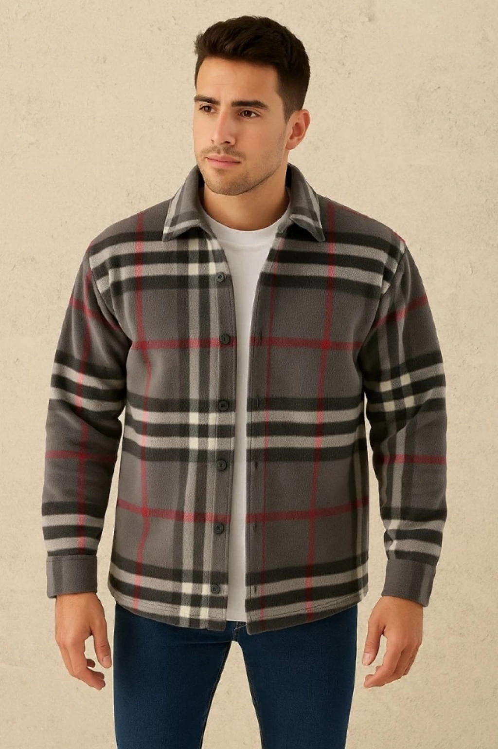 MDB Erkek Pelüş Polar Hırka Gömlek – Yakalı, İlik Düğmeli, Göğüs Cepli, Yumuşak Dokulu Kışlık Regular Fit Rahat Günlük odel Gri