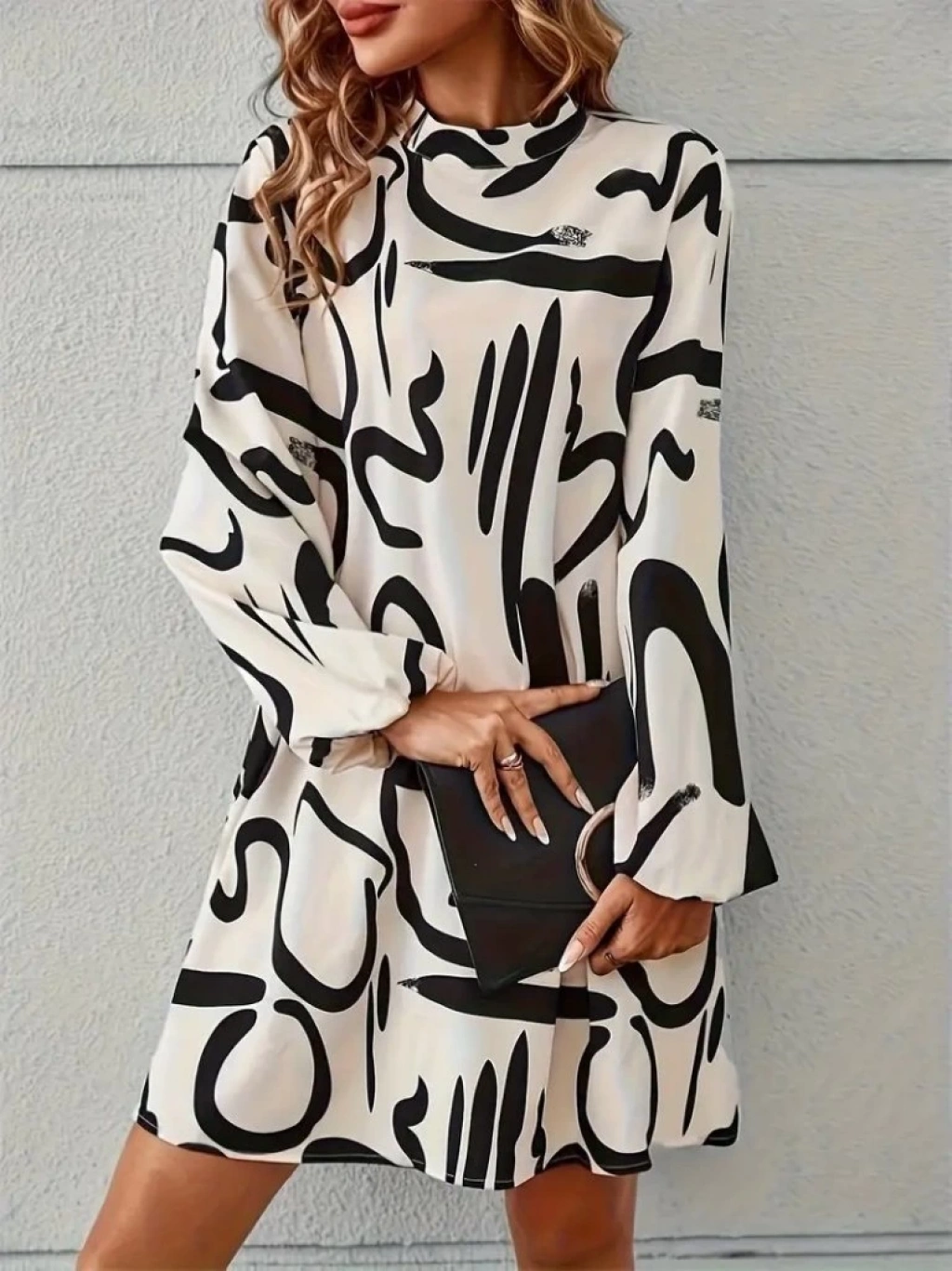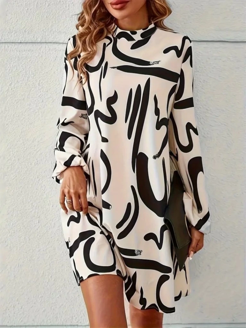 Kadın Uzun Kollu Balıkçı Yaka Desenli şardonlu Dalgıç Elbise