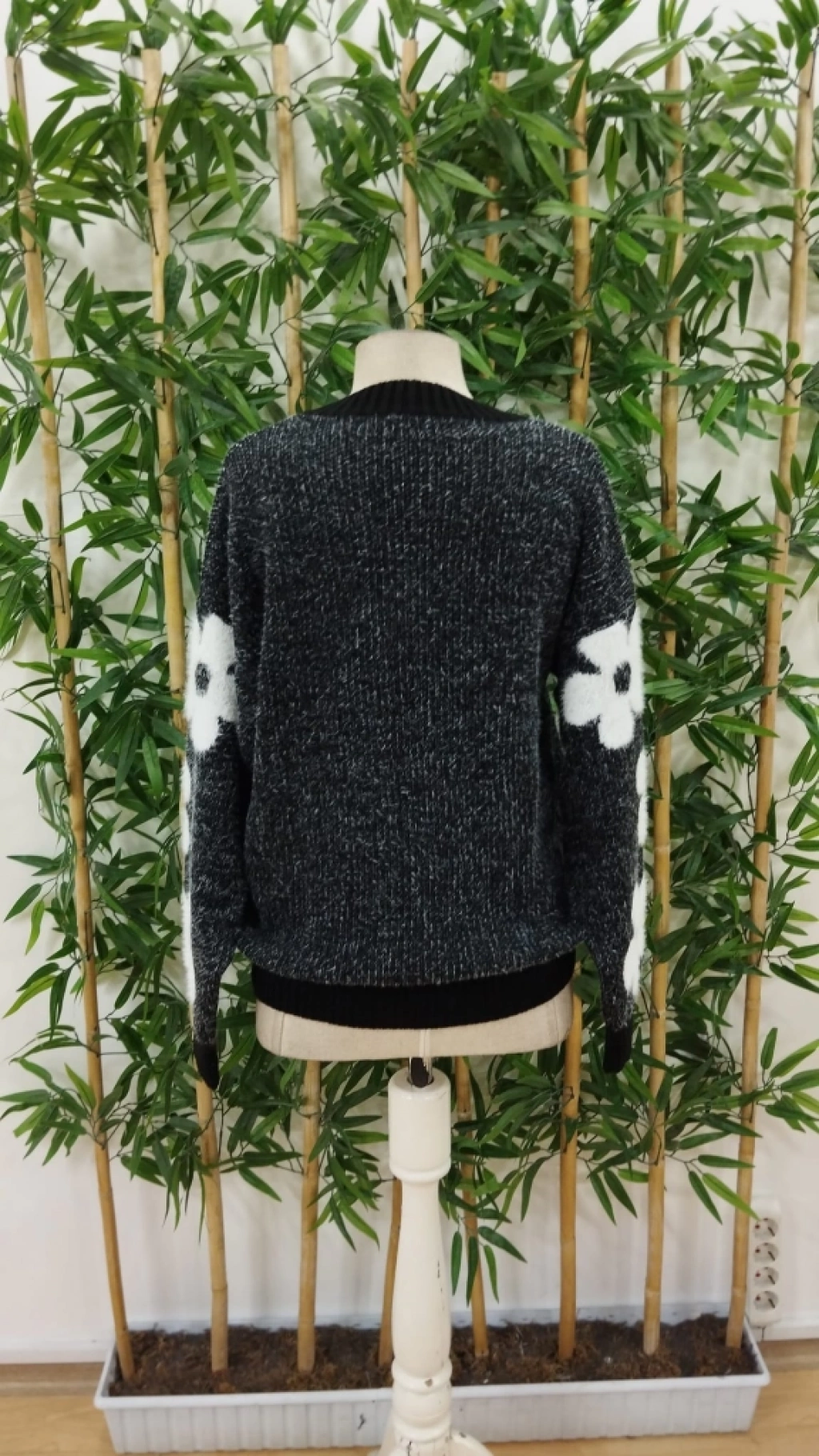 MDB Kadın Uzun Kollu Bisiklet Yaka çiçek Desenli Triko Bluz