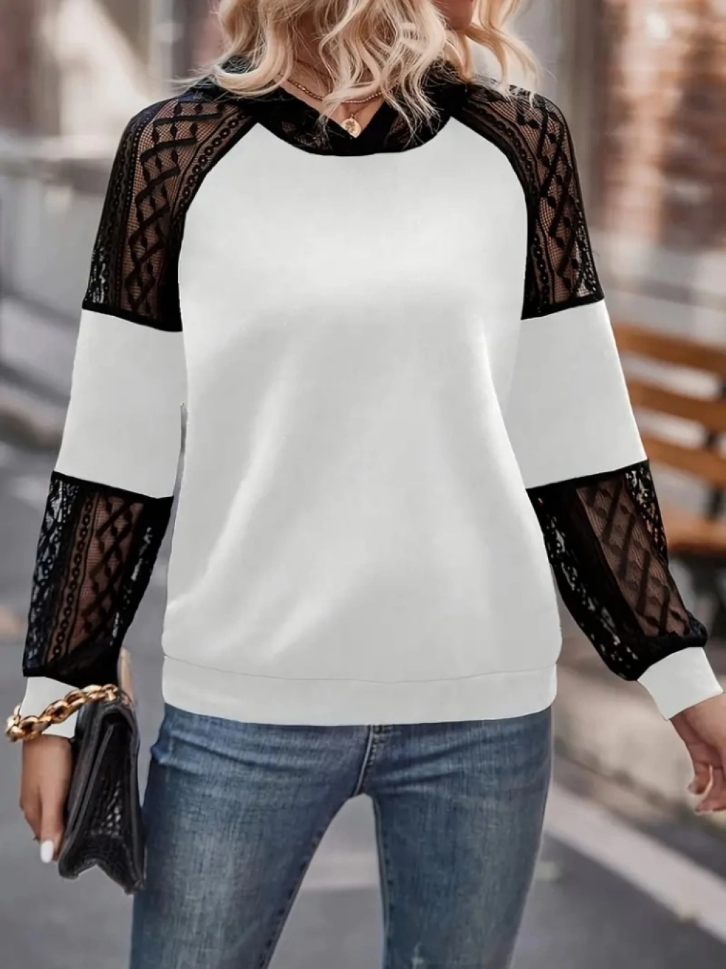 Kadın Uzun Kollu Dantelli Kapşonlu Viskon Iki Iplik Bluz