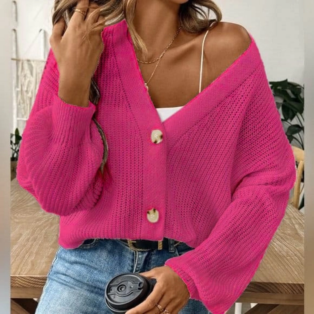 Kadın Uzun Kollu Düğme Detay Triko Bluz