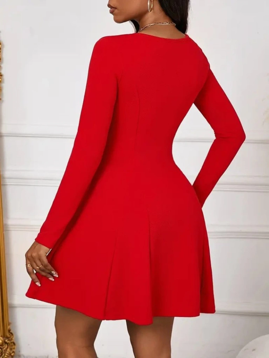 Kadın Uzun Kollu Kare Yakalı Mini Ithal Krep Elbise