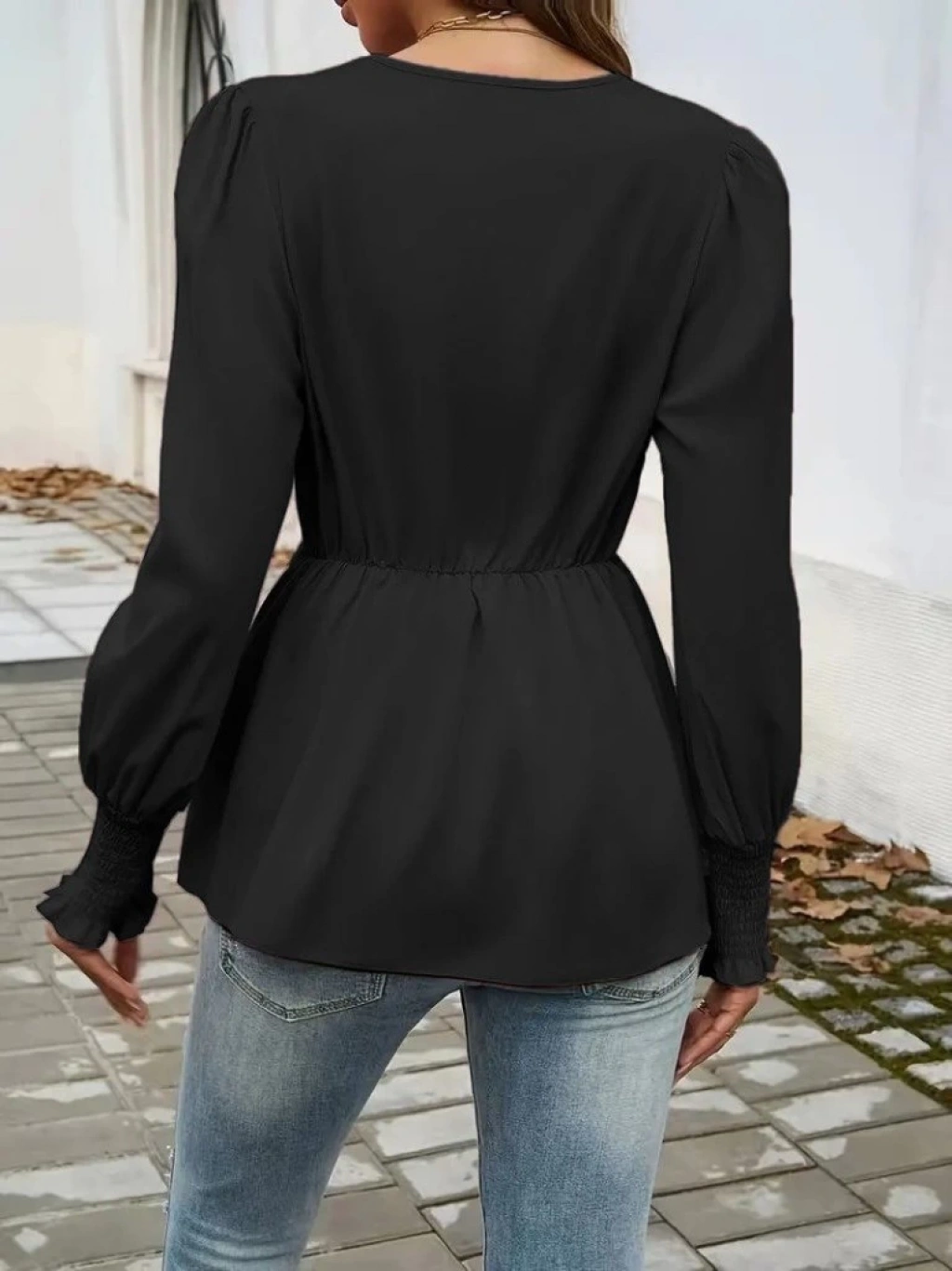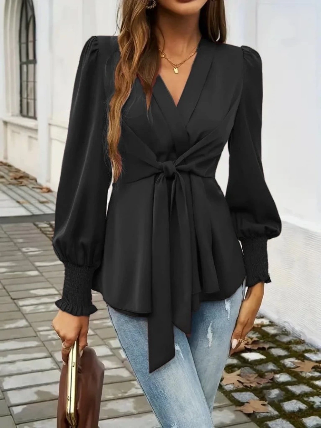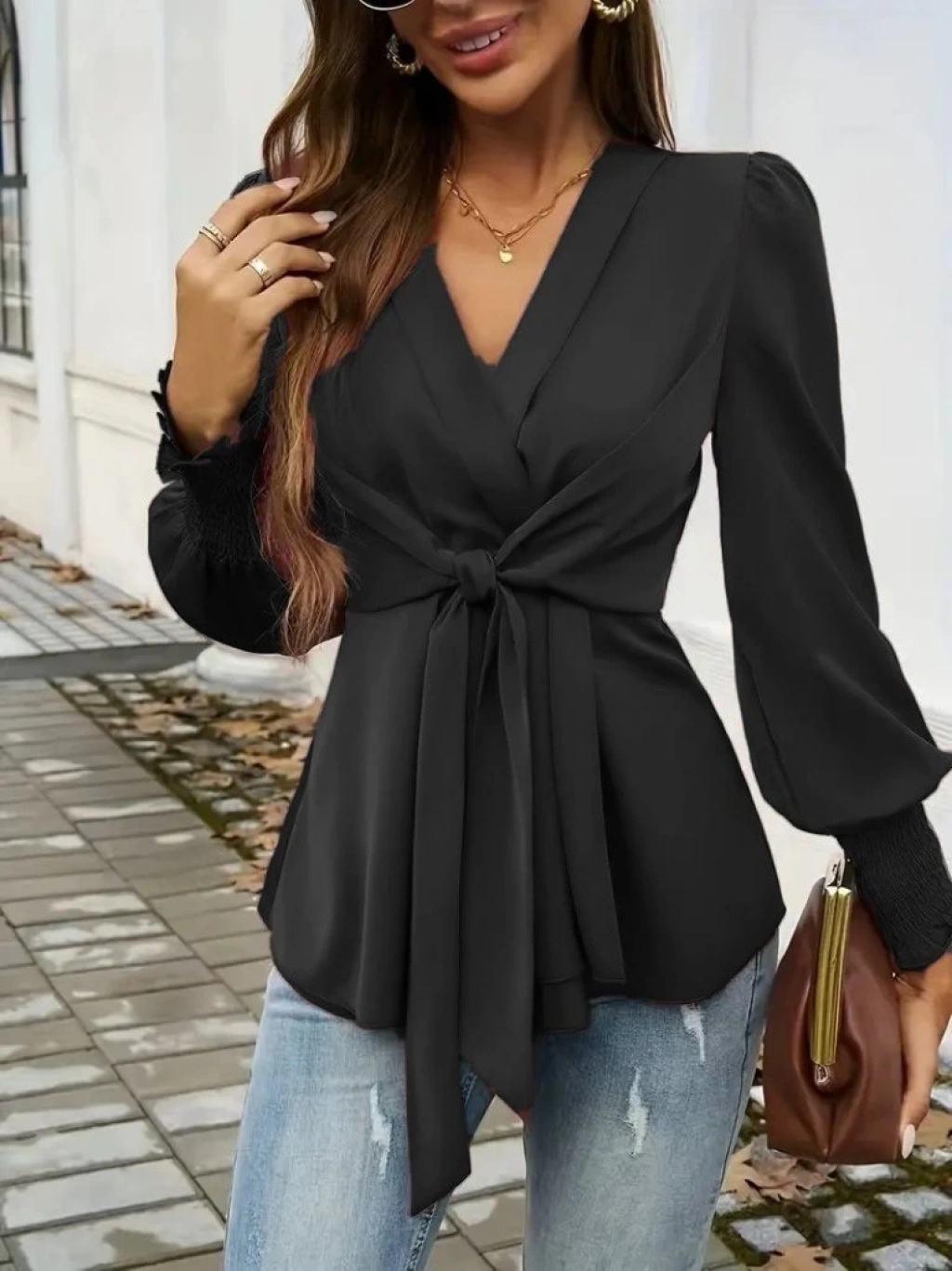 Kadın Uzun Kollu Kruvaze Yakalı önden Bağlamalı Ithal Krep Bluz