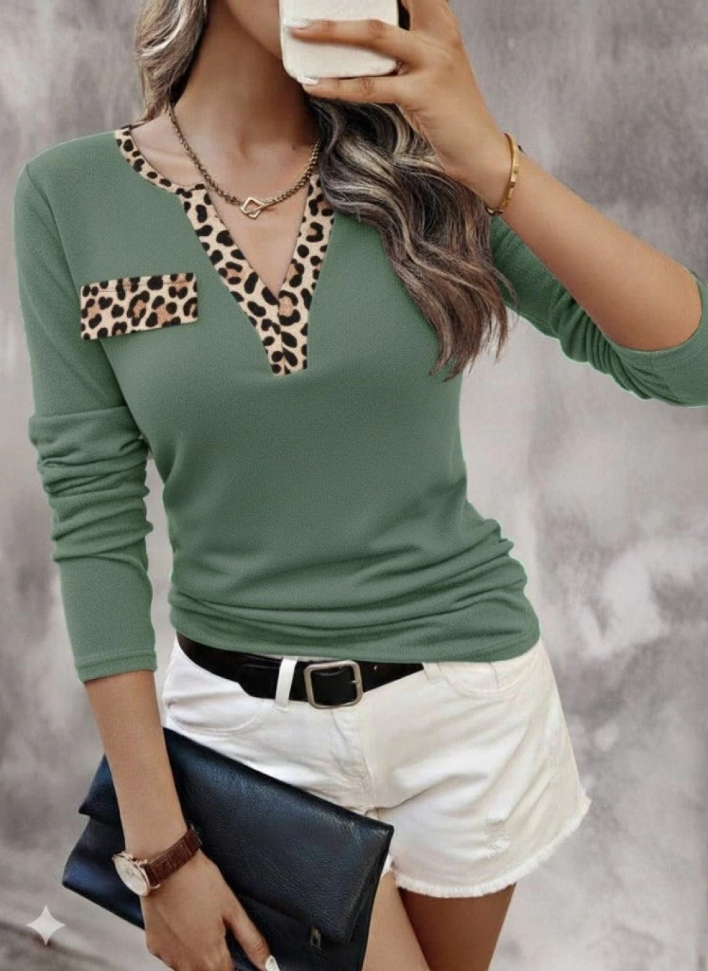 Kadın Uzun Kollu V Yakalı Kaşkorse Bluz