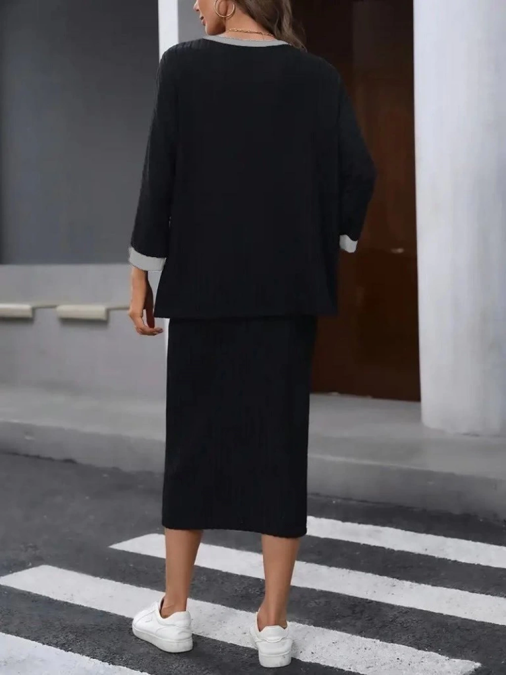 Kadın Uzun Kollu Yakası Açık şardonlu Kaşkorse Bluz Ve Eteği Bağcıklı Ikili Takım