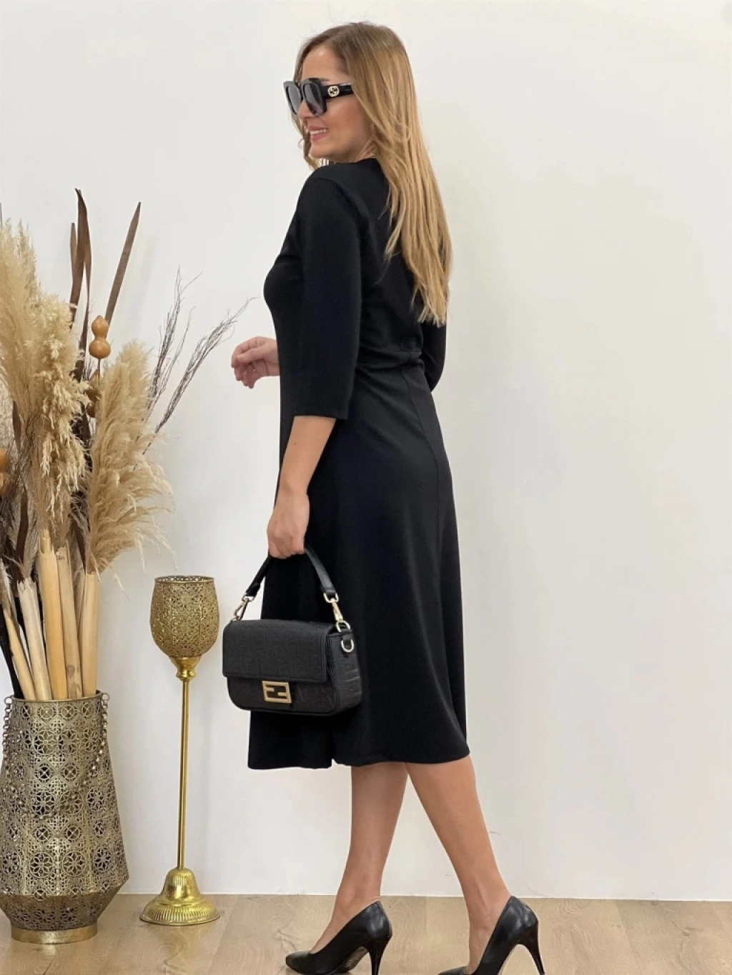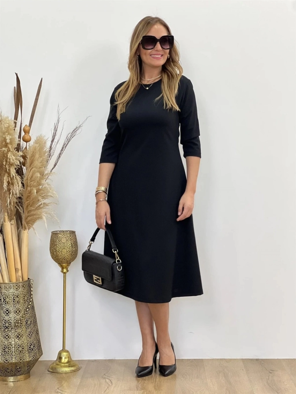 Kadın Uzun Truvakar Kol Bisiklet Yaka Midi Modal Elbise