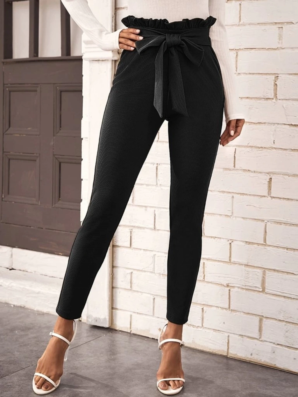Kadın Yüksek Bel Beli Fırfırlı önden Bağlamalı Ithal Krep Pantolon