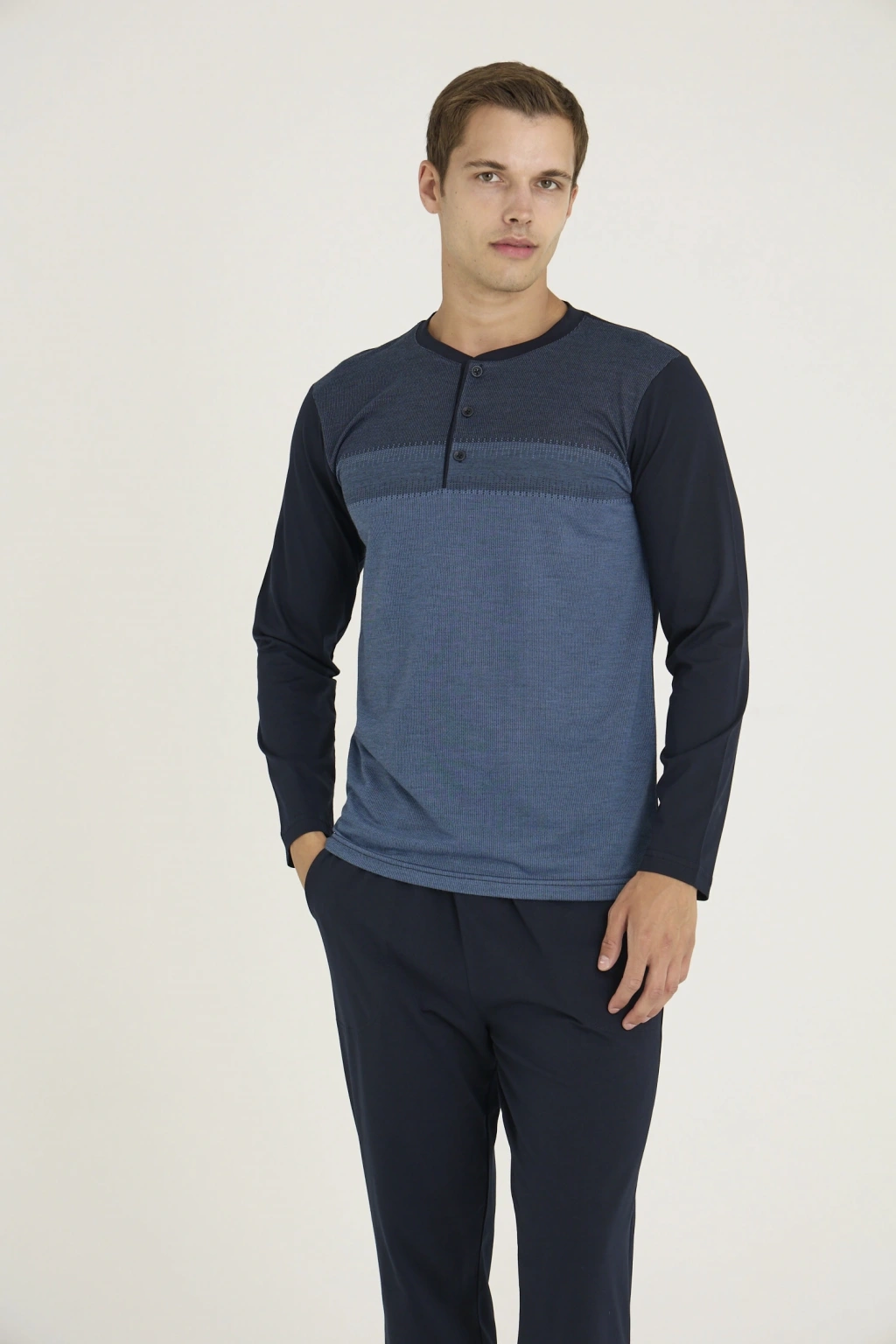 MDB Kocabey 9220 Erkek Midi Yaka Uzun Kol Pijama Takım