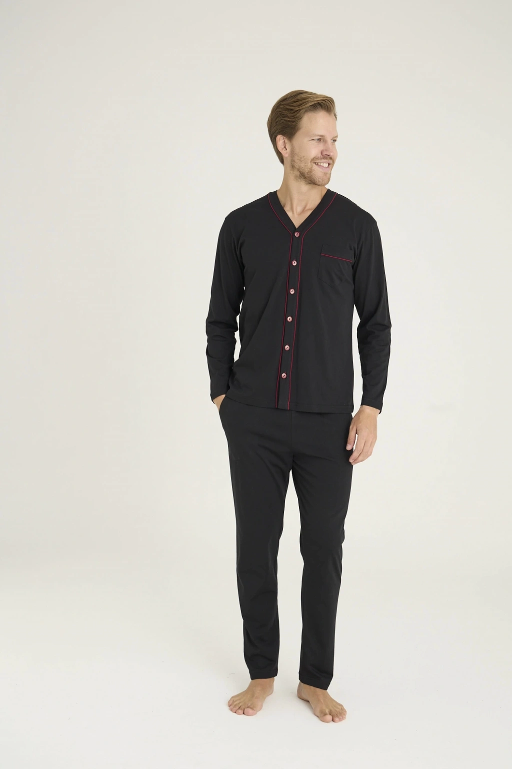 MDB Kocabey 9267 Erkek V.Yaka Boydan Düğmeli Pijama Takım
