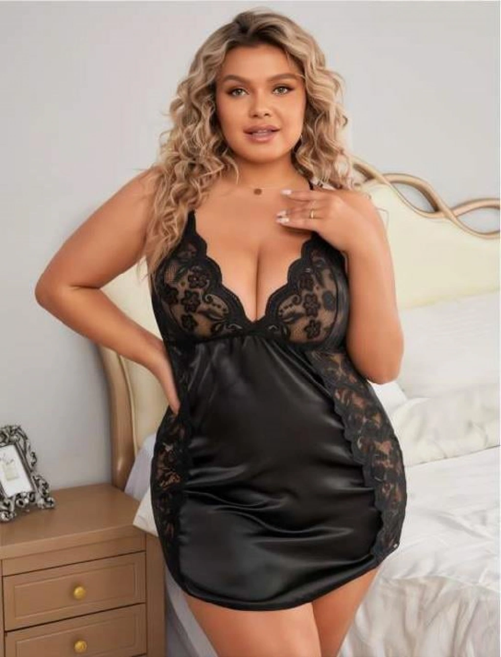 MdbShop Büyük Beden Siyah Dantel İşlemeli Saten Gecelik, şıklığı ve şehveti bir arada sunuyor. Büyük beden kadınların rahatça kullanabileceği, kaliteli saten kumaştan üretilmiş olan bu gecelik, dantel işlemeleriyle göz kamaştırıyor. Her detayı özenle düşünülmüş olan bu ürün, vücudu saran kesimiyle zarif bir duruş sağlarken, dantel detaylarıyla da feminen bir hava katıyor. MdbShop kalitesiyle üretilen bu gecelik, hem şıklığı hem de konforu bir arada arayan kadınların tercihi olmaya aday.