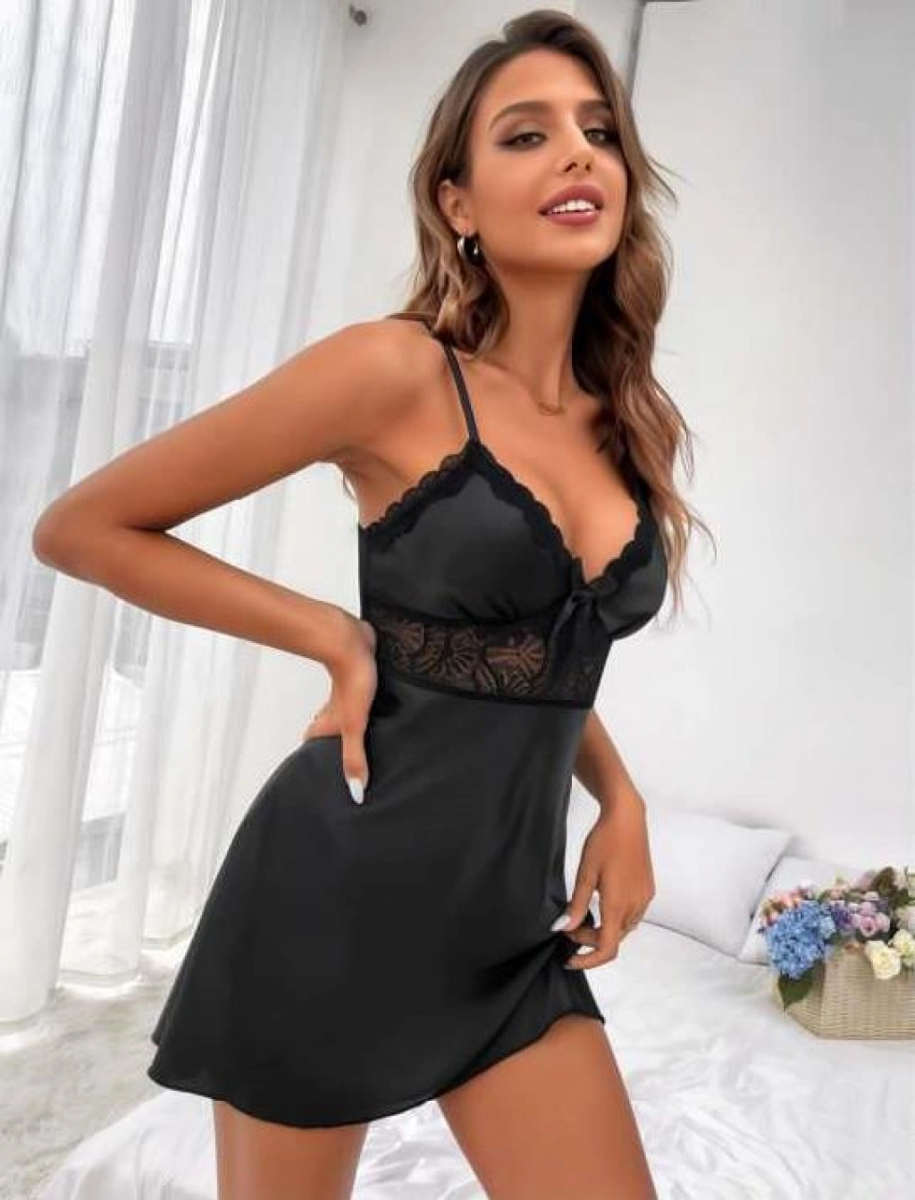 MdbShop Siyah Dantel Detaylı İnce Askılı Saten Kısa Fantezi Gecelik, şıklığı ve zarafeti bir arada sunuyor. Kaliteli saten kumaşı ve dantel detaylarıyla öne çıkan bu gece kıyafeti, rahat ve şık bir kullanım vadediyor. İnce askıları sayesinde dikkat çekici bir görünüm sunarken, kısa kesimiyle de feminen bir hava katıyor. Bu gece kıyafetiyle gecelerinize romantizm ve cazibe katacak, özel anlarınızda size eşlik edecek. MdbShopun özenle seçilmiş koleksiyonu arasında yer alan bu ürünü, hemen inceleyebilir ve satın alabilirsiniz. Bu gece kıyafetiyle tarzınıza zarif bir dokunuş yapmaya ne dersiniz?
