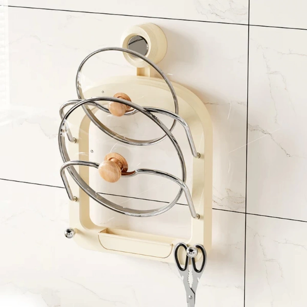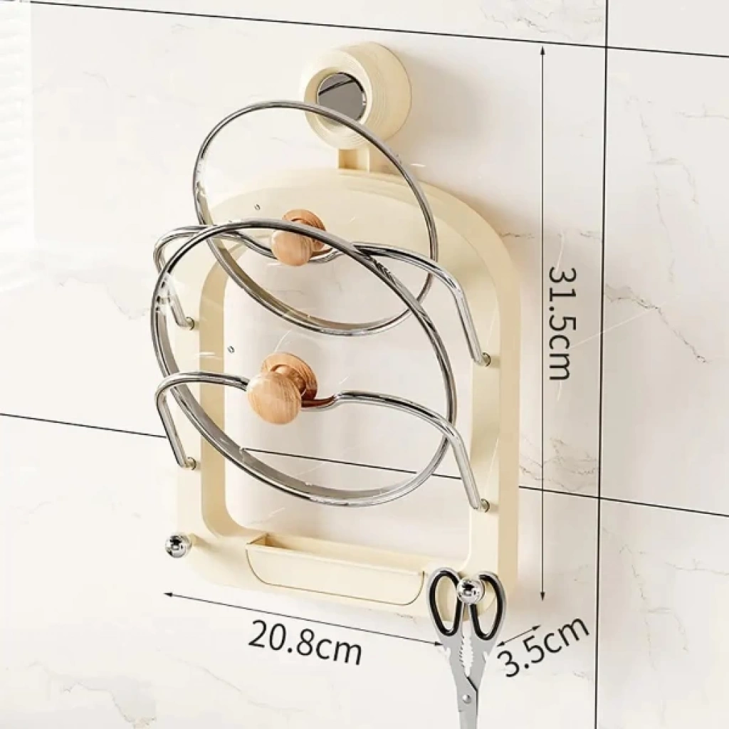 MUTFAK TAVA TENCERE KAPAK TUTUCU ORGANİZER RAFÜrün ÖzellikleriMutfak tava tencere kapak tutucu organizer raf, mutfak düzeninizi sağlamak için pratik ve kullanışlı bir çözümdür. Kaliteli plastik malzemeden üretilmiş olup uzun süreli kullanım sağlar. Güçlü vantuz sistemi sayesinde duvara monte etmeden kolayca yapışabilir ve istediğiniz zaman yerini değiştirebilirsiniz. 31,5 cm yükseklik, 20,8 cm genişlik ve 3,5 cm derinliğe sahip kompakt tasarımıyla az yer kaplar. İki adet kapak yuvası sayesinde tencere ve tava kapaklarını düzenli şekilde saklarken alt kısmındaki ek bölümde makas veya mutfak gereçlerini asabilirsiniz.Paket İçeriği1 adet Mutfak Tava Tencere Kapak Tutucu Organizer Raf