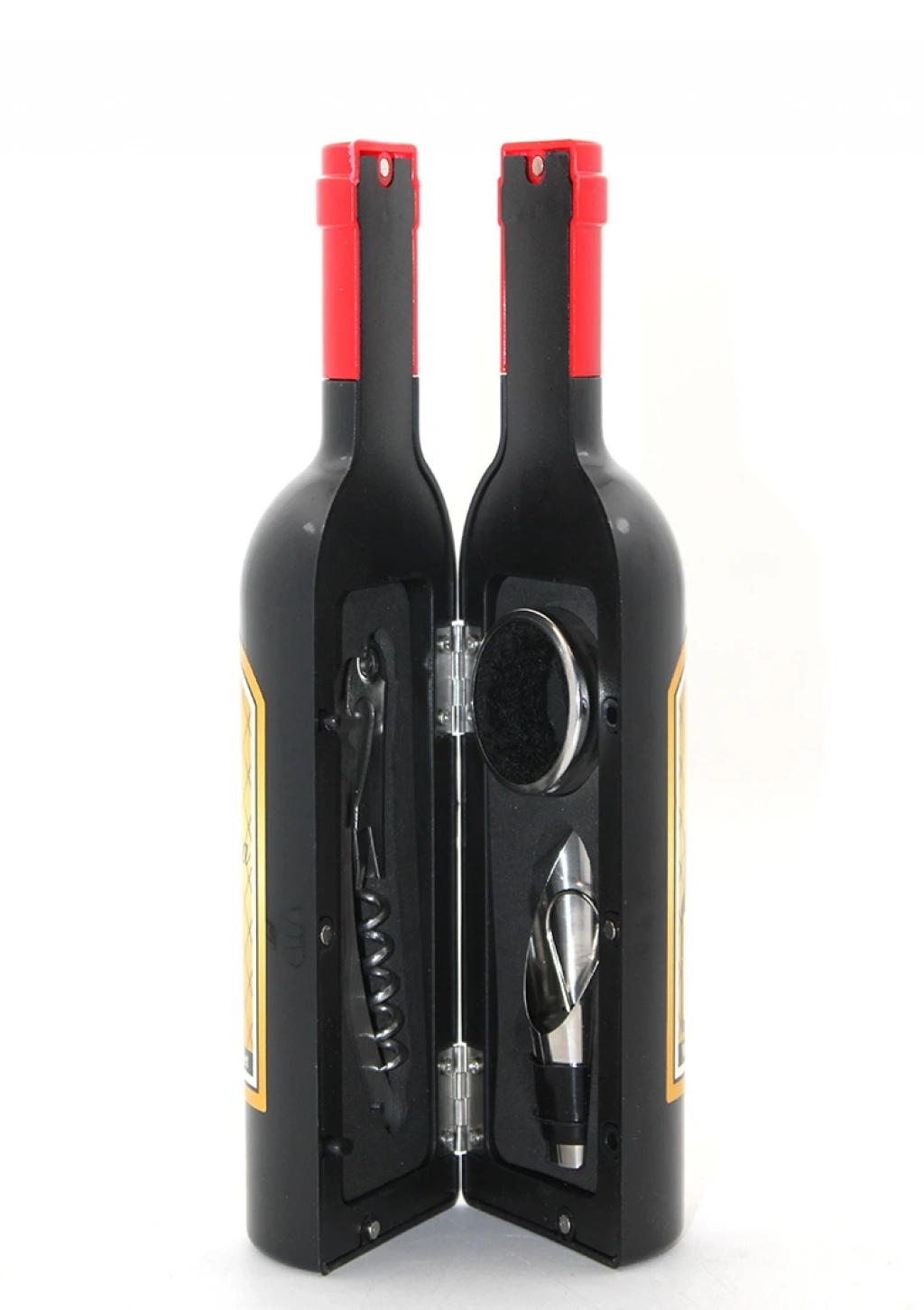 ŞİŞE TİRBUŞON SETİÜrün ÖzellikleriŞişe Tirbuşon Seti, şarap severler için özel olarak tasarlanmış, pratik ve şık bir açma deneyimi sunan eksiksiz bir settir. Paslanmaz çelik ve dayanıklı malzemelerden üretilmiş olup, uzun ömürlü kullanım sağlar. Ergonomik tasarımı sayesinde rahat bir tutuş sunar ve şişe mantarlarını zahmetsizce açmaya yardımcı olur. Set içinde yer alan çeşitli aksesuarlar, şarap sunumunu ve açma işlemini kolaylaştırarak profesyonel bir deneyim yaşatır. Hem ev kullanımı hem de restoran, bar gibi işletmeler için ideal bir settir. Şık kutu tasarımı sayesinde harika bir hediye seçeneğidir.Paket İçeriği1 adet Şişe Tirbuşon Seti