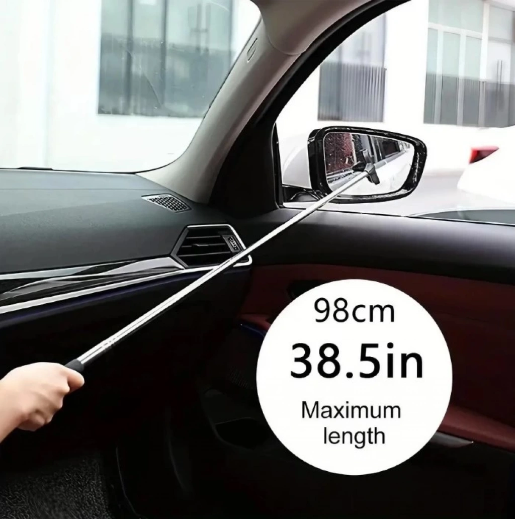 TELESKOPİK ARABA CAM AYNA SİLECEĞİÜrün ÖzellikleriTeleskopik araba cam ayna sileceği, sol ve sağ dikiz aynalarının yanı sıra ulaşılması zor cam köşelerinde etkili temizlik sağlar. 98 cm'ye kadar uzayabilen teleskopik yapısı sayesinde yüksek ve derin alanlara kolaylıkla erişim sunar. Yağ lekeleri, toz ve silecek altı kirlerini suyla fırçalayarak etkili şekilde temizler. Zorlu hava koşullarında bile camlarınızda net görüş sağlayarak güvenli sürüşe katkıda bulunur. Kompakt yapısı sayesinde küçüldükten sonra kolayca saklanabilir ve araç içinde yer kaplamaz. Pratik, dayanıklı ve fonksiyonel tasarımıyla araç temizliği için ideal bir üründür.Paket İçeriği1 Adet Teleskopik Araba Cam Ayna Sileceği
